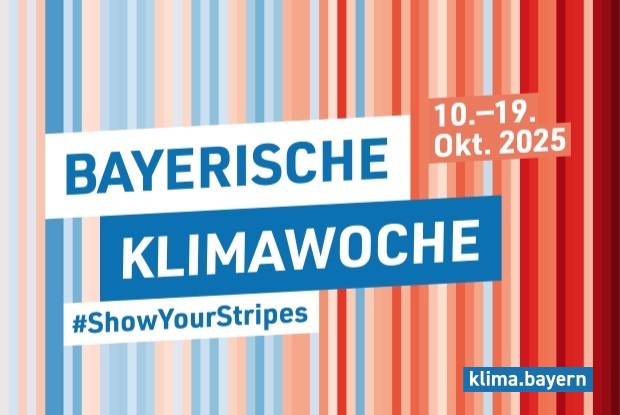 Vom 10. bis 19. Oktober 2025 findet die Bayerische Klimawoche statt – eine Gemeinschaftsaktion der Bayerischen Klima-Allianz und der Bayerischen Staatsregierung. Überall im Freistaat laden zahlreiche Veranstaltungen dazu ein, sich zu informieren, auszutauschen und selbst aktiv zu werden: Exkursionen in die Natur, Fachvorträge, Ausstellungen, Energieberatungen und Workshops bieten ein abwechslungsreiches Programm für Jung und Alt. Eine Übersicht aller Aktionen gibt es unter www.klima.bayern.de