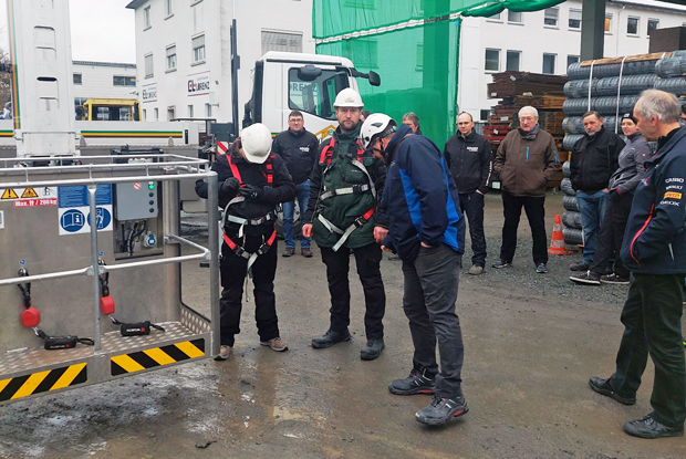 Die Hubarbeitsbühne im Fokus während der Outdoor-Schulung bei der Firma Dennewill.