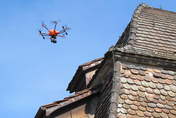 Doch der Aufwand war es wert, sagt Heinrich: „Vor kurzem haben wir ein Hoteldach abgeflogen und die Betreiber waren erstaunt, wie viele Dachziegel im Eingangsbereich kaputt waren.“ Die Arbeit mit seinem Hexacopter macht ihm Spaß: „Es ist spannend, die Drohne zu steuern und mit den feinen Hebeln in die Luft zu bewegen.“